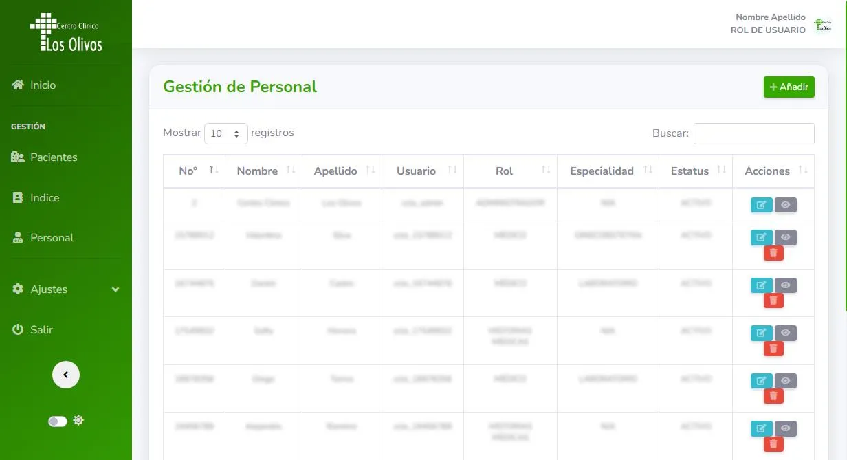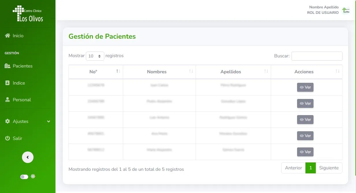 La presentación de cuadros y tablas ha sido adaptada a los requisitos del cliente, brindando una interfaz clara y ordenada. Esto permite la consulta rápida y precisa de datos médicos, mejorando los procesos de administración dentro del centro de salud.